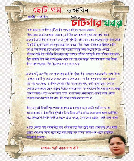 গ্রামের বাড়ি এসে ইরা যখন তখন শুধু ডাস্টবিন খুঁজে। ইরা খাবারের অপ্রয়োজনীয় অংশ কিংবা ব্যবহার করা টিস্যু যেখানে সেখানে একদম ফেলতে চায় না।ইরা দাদুর কাছে বারবার বায়না ধরে আর বলে,দাদু, ডাস্টবিন কোথায়? ইরা আরও বলে দাদু, সবাই ময়লা গুলো সেখানে সেখানে কেন ফেলে দেয়? বাড়িতে উঠোনে খেলতে আসা সব বাচ্চাদের ইরা বারবার বলে,আচ্ছা, তোমরা সবাই এখানে ওখানে ময়লা ফেলে নোংরা করো কেন বলতো?গ্রামের সবাই এটাকে সাধারণ ভাবে দেখলেও ইরা যেন এটা কোন ভাবেই মানতে পারে না।